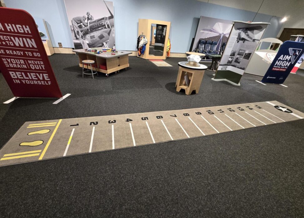 - Step up to the Interactive Mirror, activated by pressure sensitive mats, to expose images of airplanes. This activity helps visitors see themselves in roles in the aviation field with a variety of costumes.