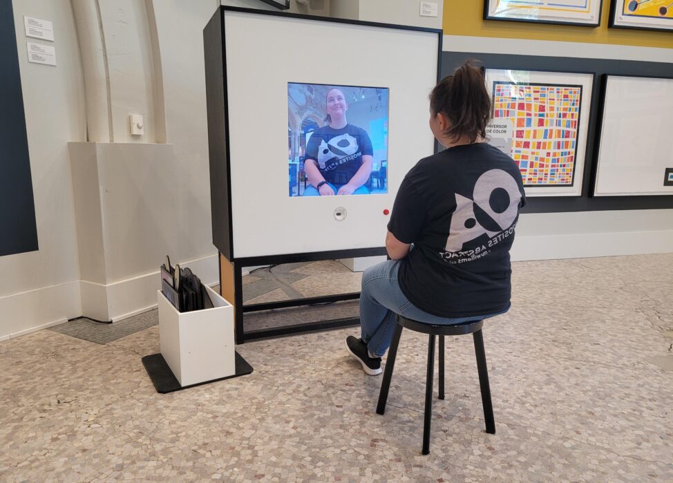 The color reverser is a fun interactive while also teaching basic color theory. With the push of a button, the screen will reverse all the colors presented in front of it. Print images on cards or set up a table to allow visitors to draw pictures or do both!